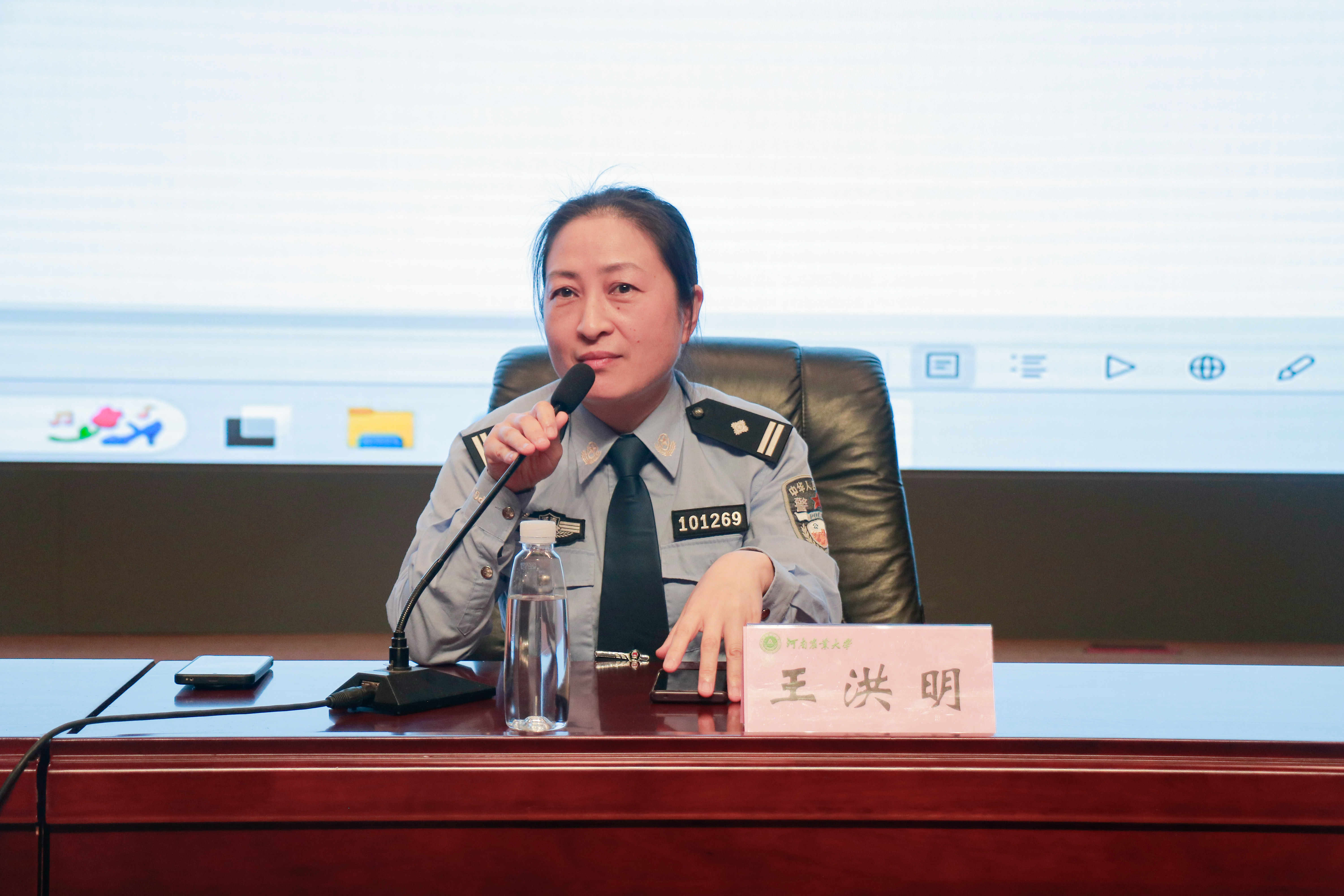 本网讯(通讯员 尹瑞然)为切实维护学生权益,提升学生防诈观念。4月29日下午,我校保卫处举行反诈、消防及学生日常安全主题讲座,本次讲座邀请到金水分局反诈大队队长刘庆、金水分局反诈骗中心反诈宣传民警王洪明、金水区消防救援大队消防科科长冉然为学生讲解反诈及消防知识,草榴
