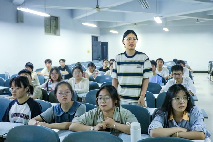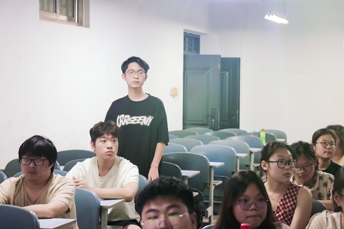 最后,杨硕讲解报名条件、选拔流程及培养机制,鼓励大家积极了解各部门的工作。宣讲环节结束后,党建办公室成员与在场学生展开面对面交流,针对招新政策、工作要求等问题进行细致解答。现场学生踊跃提问,现场气氛热烈。