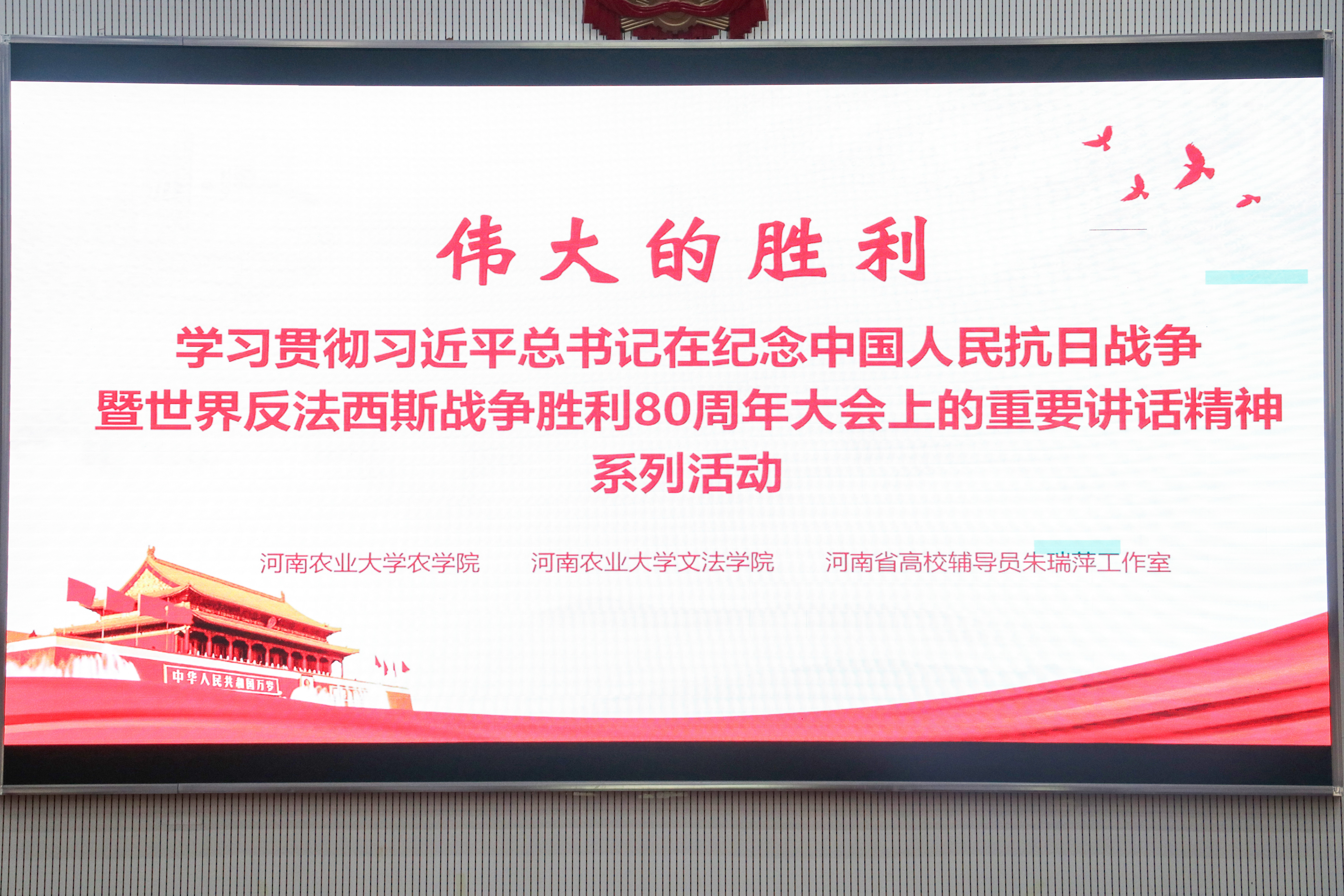 联合文法学院于模拟法庭举办“学习贯彻习近平总书记在纪念中国人民抗日战争暨世界反法西斯战争胜利80周年大会上的重要讲话精神”主题讲座。草榴