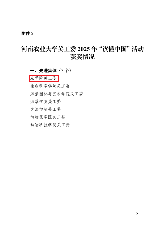 将以此次获奖为契机,持续弘扬“五老”精神,搭建更多让师生学习榜样、传承精神的平台,引导广大青年学子在聆听农业先辈的故事、感悟“三农”情怀的过程中坚定理想信念,为学校创建中国特色世界一流农业大学、助力乡村振兴与保障粮食安全贡献青春力量!