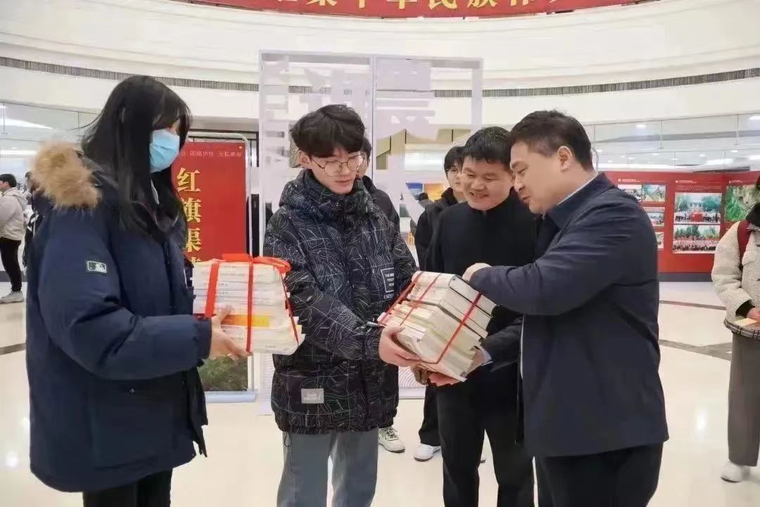 机关党委办公室党支部负责人、校党委办公室副主任郭治鹏赠送书籍