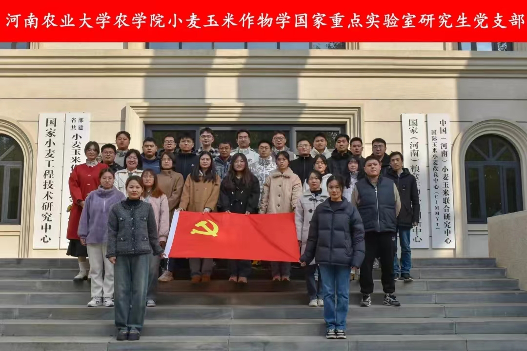 小麦玉米作物学国家重点实验室研究生党支部建在省部共建小麦玉米作物学国家重点实验室上,聚焦知农爱农新型人才培养,现有党员28人,其中正式党员25人,预备党员3人,包括小麦、玉米等栽培、育种方向的硕士、博士研究生。支部坚持用习近平新时代中国特色社会主义思想凝心铸魂,贯彻“七个有力”建设标准,探索形成“四航计划”党支部工作法,以一流党建凝聚人心。支部坚持以党建促科研,以解决影响小麦、玉米两大粮食作物关键技术问题为切入点,他们的足迹遍布省内50余个县市以及四川、西藏、青海、甘肃等地,积极开展基础理论和应用基础研究。近三年来,支部成员参与国家重点研发计划、国家自然科学基金等国家级项目50余项,以第一作者在Science、Mol Plant、Sci Adv等国际知名期刊发表高水平论文50余篇。支部成员跨年级、跨方向组建创新创业团队,立足科技小院,用行动助力农业增产、农民增收,获“互联网+”“挑战杯”“创青春”等大学生创新创业赛事国奖20余项,在作物学一流学科创建上担当作为,实现党建学术双丰收。近年来,涌现出“中国大学生年度人物”博士生吕伟增、第二批全省高校“大学生党员标兵”硕士研究生杨留洋、“河南省研究生创新之星”硕士研究生熊雪航等一大批党员先锋。