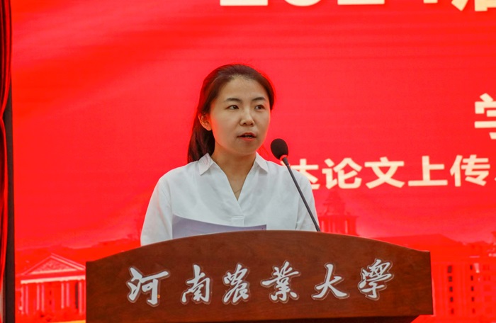 草榴教学干事范晨雨传达了毕业论文上传,学位授予以及毕业条件等教务教学的相关要求。院团委书记朱瑞萍就三方协议签订、档案存放、党团关系转接等方面强调注意事项。