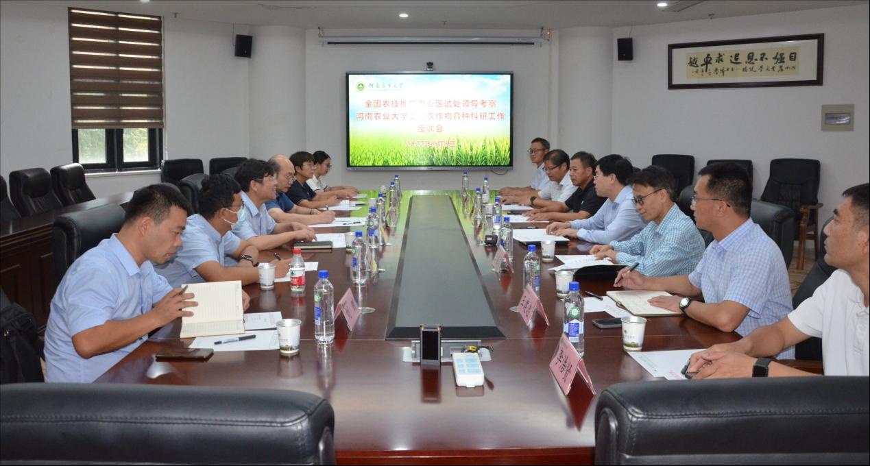 王道文对全国农业技术推广服务中心、河南省农业农村厅种业发展中心一行到来表示欢迎。他简要回顾了我校办学历史,并介绍了作物学学科发展历程、学院科研平台建设等情况。