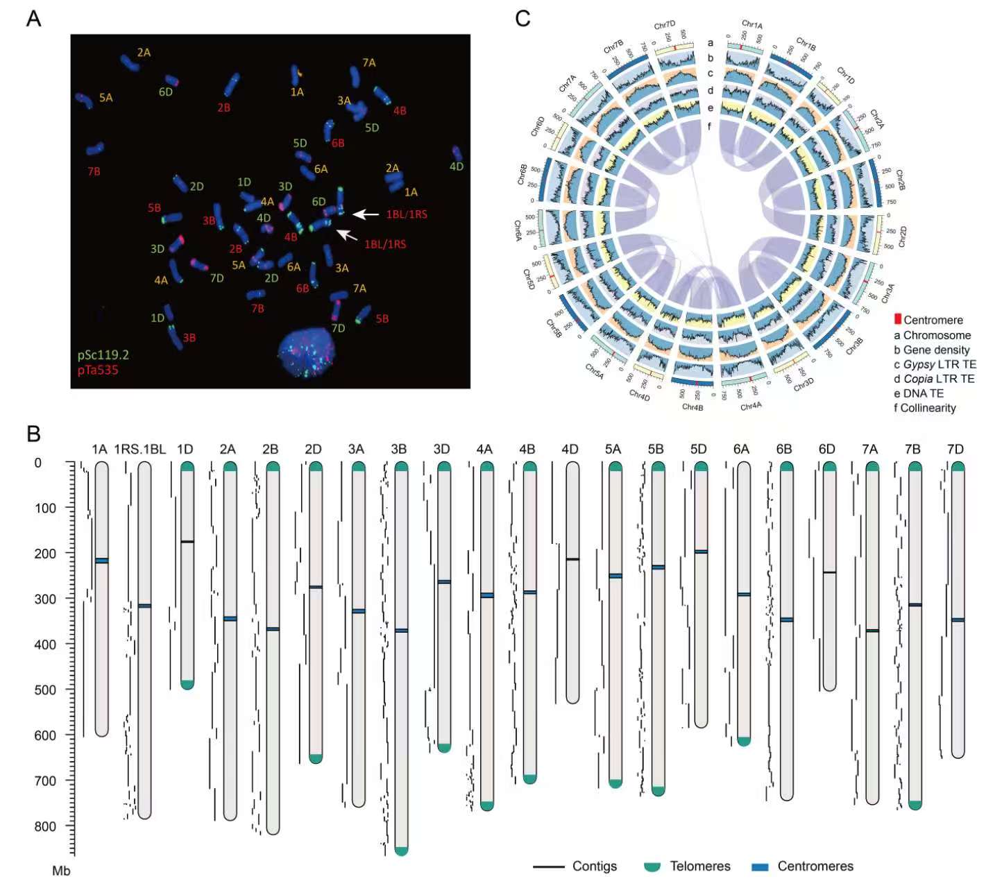 小麦是重要的粮食作物,骨干亲本在小麦育种改良历史进程中起了重要作用。周8425B是我国小麦育种家郑天存教授利用六倍体小黑麦与普通小麦远缘杂交、大群体回交、辐射诱变、阶梯杂交改良夏繁加代、表型选育和染色体检测等多项技术,在1984年创制的出具有矮秆、大穗大粒、抗病抗逆等多个优异性状的1BL/1RS小麦新种质。周8425B具有优良农艺性状和良好的配合力,尤其是突出的成株期条锈病和叶锈病抗性,其本身以及由其衍生的周麦13、周麦16和周麦22等已成为我国多个麦区的重要育种亲本,至2023年已育成审定衍生新品种966个(国审345个,省审621个),形成了以周麦、郑麦、百农、豫麦、豫农、存麦、中麦等为代表的系列品种,种植面积占黄淮南片麦区65%以上,为小麦品种更新换代、生产发展及我国粮食安全和农民增产增收做出了重要贡献。但是由于缺乏其详尽的基因组序列,导致对周8425B重要农艺性状优异基因挖掘及其作为骨干亲本遗传基础的研究缺乏突破性进展。