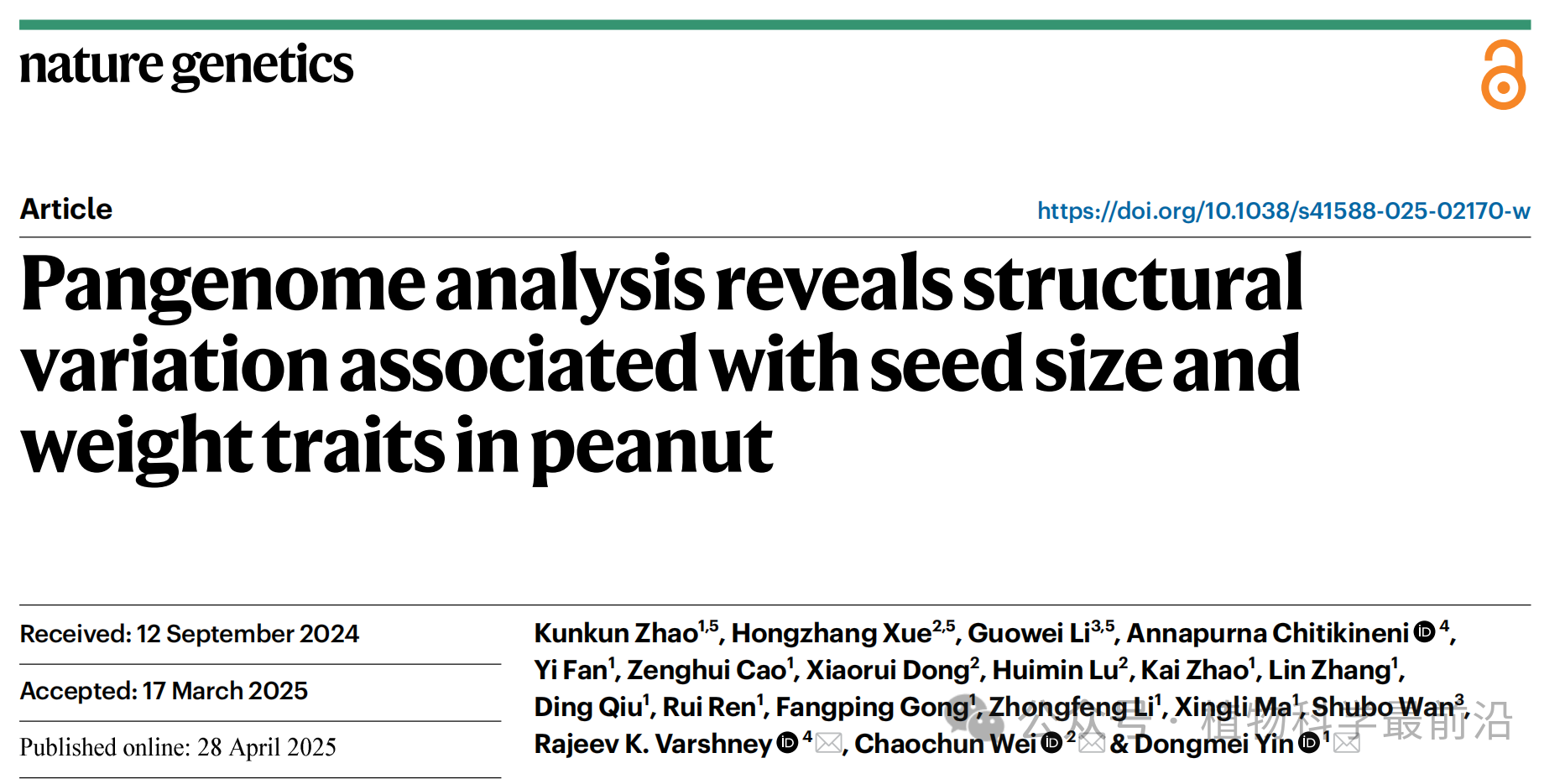 草榴殷冬梅教授、上海交通大学韦朝春教授和澳大利亚莫道克大学Rajeev K. Varshney院士为论文共同通讯作者,草榴青年教师赵昆昆、上海交通大学青年教师薛泓嶂和山东省农业科草榴