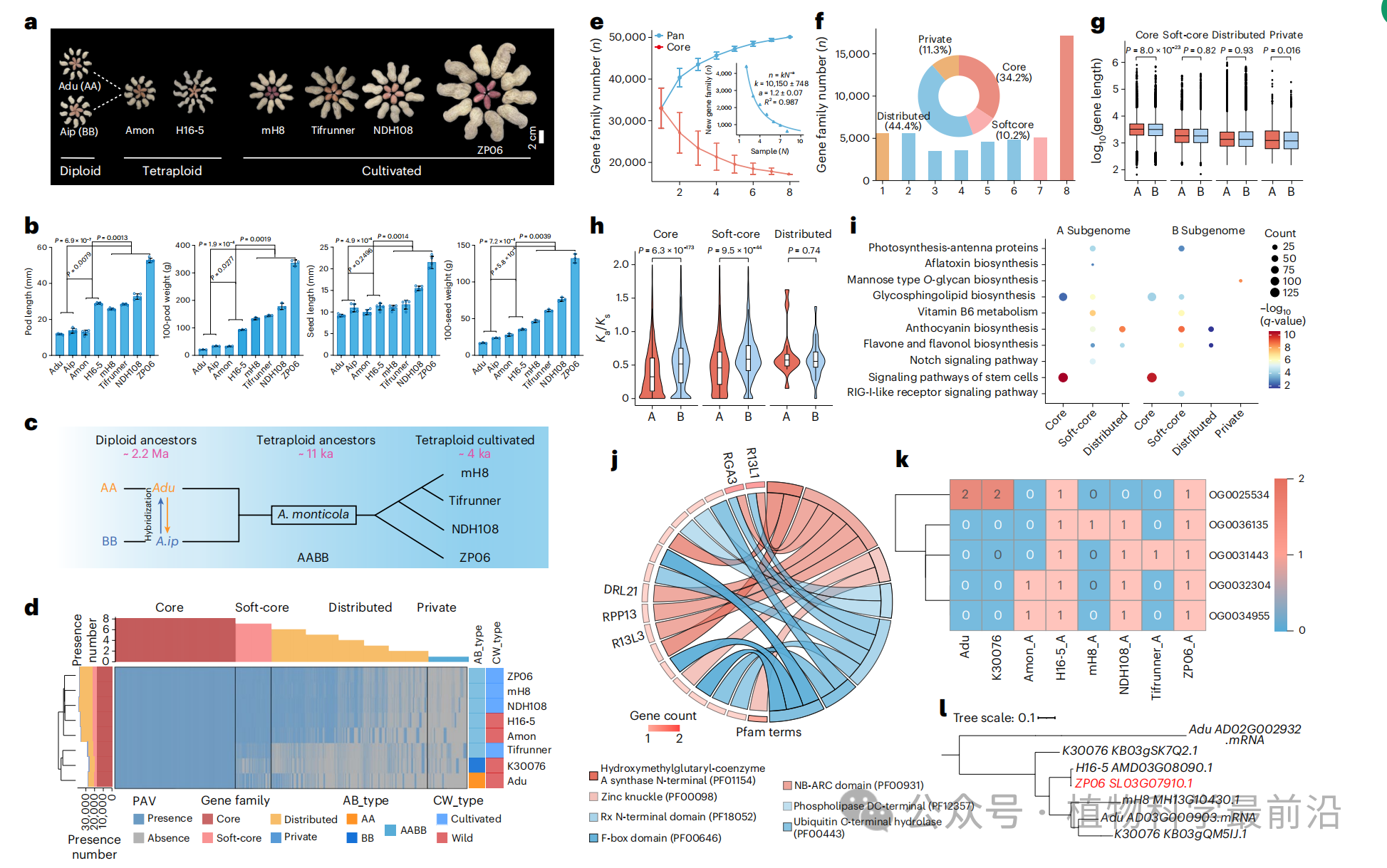 图2 花生泛基因组构建与基因家族特征