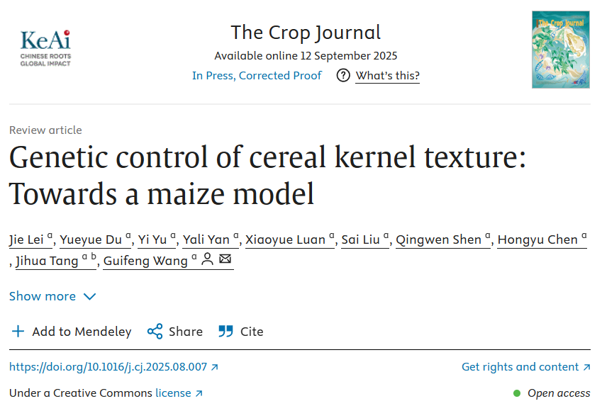 王桂凤教授课题组在The Crop Journal在线发表了题为“Genetic control of cereal kernel texture: towards amaize model”的综述文章,系统概括了玉米籽粒质地形成的遗传调控研究进展,帮助从事相关领域的科研工作者全面了解玉米籽粒质地形成的分子遗传基础,为胚乳质地性状遗传改良提供思路和指导。