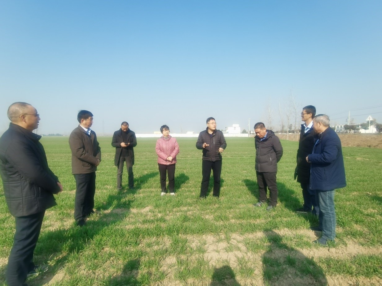 调研淮滨县稻茬麦田弱筋小麦长势并进行现场技术指导