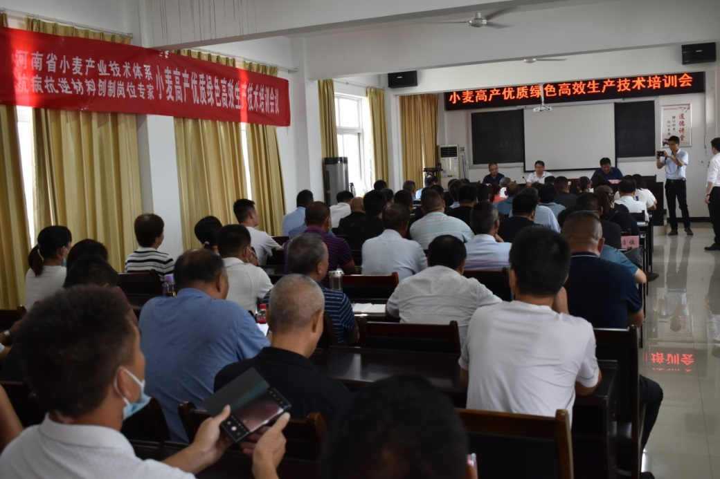 副院长、省小麦产业技术体系抗病抗逆材料创制岗位专家殷贵鸿研究员带领校小麦种质创制与新品种培育科技创新团队主要成员,赴唐河县举办“小麦高产优质绿色高效生产技术培训会”。唐河县农业农村局农业干部、各乡镇农业服务中心主任、农业技术员及当地种粮大户代表等共80余人参加此次培训会。培训会效果显著,与会的农业专家和农民群众反应良好,唐河县农业农村局局长陈家定表示:“殷贵鸿研究员为基层农业干部和农业技术员讲授了农业科技知识,拓宽了视野,掌握了最新的小麦新品种和新技术,必将为唐河县下年度小麦持续增产增收打下坚实基础,希望每年都要举行技术培训。”不少种粮大户表示:“殷专家没有用高大上的专业词汇,用的都是我们能听得懂的话语,实实在在为我们解决了生产中遇到的实际问题,为我们今年的秋播工作提供了很好的指导。”