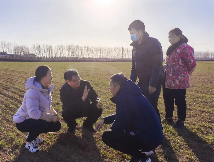 本网讯(通讯员 董纯豪)2023年1月29日,新春伊始,我校小麦专家、省小麦产业技术体系抗病抗逆岗位专家殷贵鸿研究员赴沁阳市调研小麦生长情况,先后到沁阳市王召乡、崇义镇和西向镇等地调查小麦苗情,走访了沁阳市新新家庭农场、河南乐丰种业公司小麦种子繁育基地。向沁阳市农业农村局主要领导提出“因地制宜,看苗管理,运筹肥水,稳壮控旺,促晚早发,预防倒春寒,科学防治病虫草害”等春季麦田管理建议。针对沁阳市前茬种植怀山药造成小麦播种过晚的麦田如何科学管理的迫切问题,专门到沁阳市种粮大户原体亮、郭建国等人的晚播麦田进行具体的技术指导,详细介绍了早防治纹枯病和茎基腐病等的科学措施,受到了沁阳市领导和农民群众的热烈欢迎和好评。