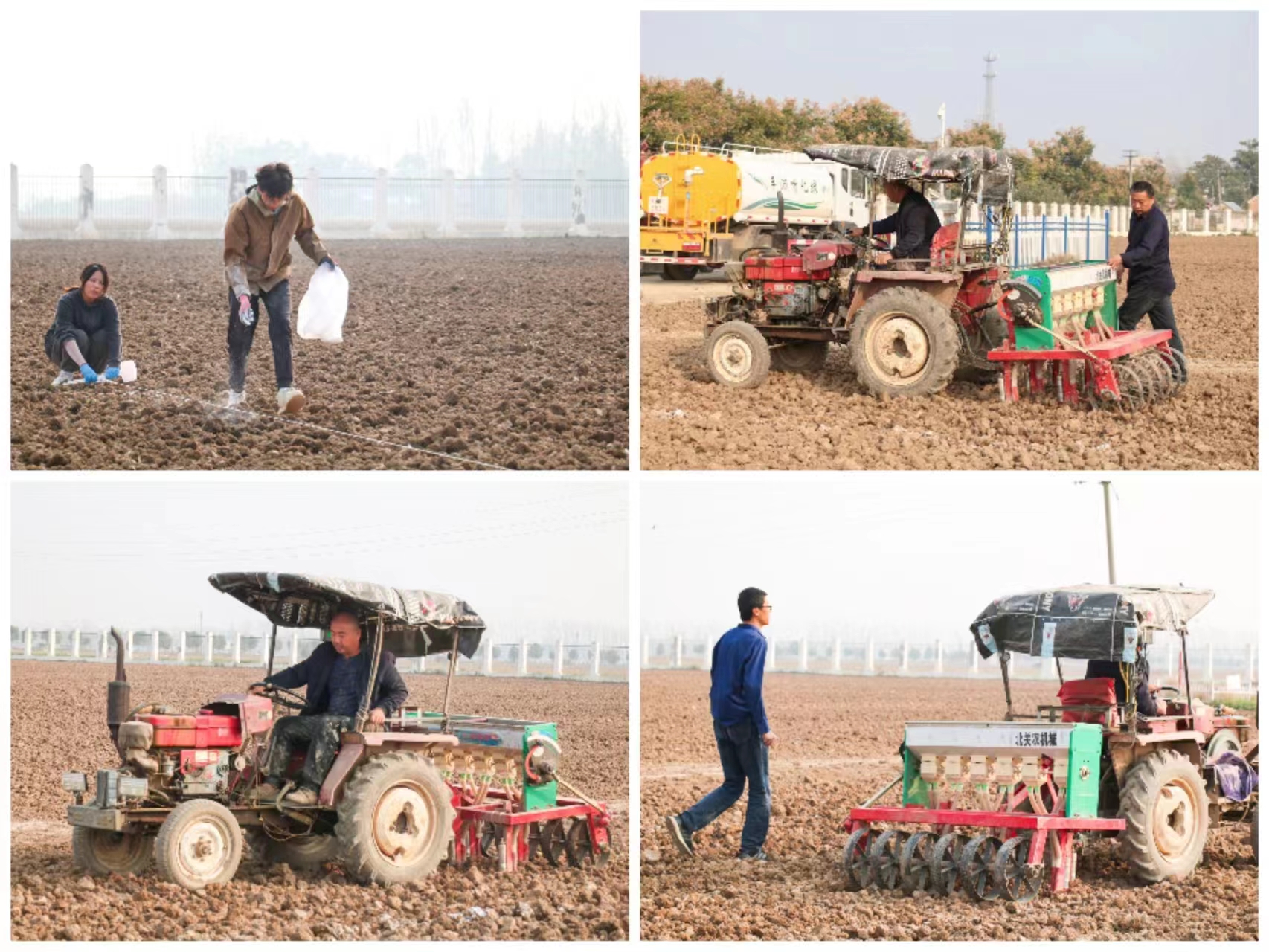 步入豫东综合试验站新品种示范展示中心,师生们忙碌的身影在农田里来回穿梭,他们协同配合,拉绳、标记、作畦、画小区;确认播种量、检查开沟器行距、调整开沟覆土镇压轮的深浅、将小麦种子倒入排种盒……完成一系列准备工作后,轰隆隆、轰隆隆,播种机在大家的注视下进入播种试验小区,播撒下的种子承载着来年丰收的希望,更装载着农业蓬勃发展的未来。谢迎新研究员为大家详细介绍了试验站展示中心设置的小麦播期试验、小麦病虫害生物防治试验和小麦新品种比较试验,研究内容主要集中在小麦产量形成、水肥利用效率、生物与非生物灾害防控等方面,并在田间对草榴