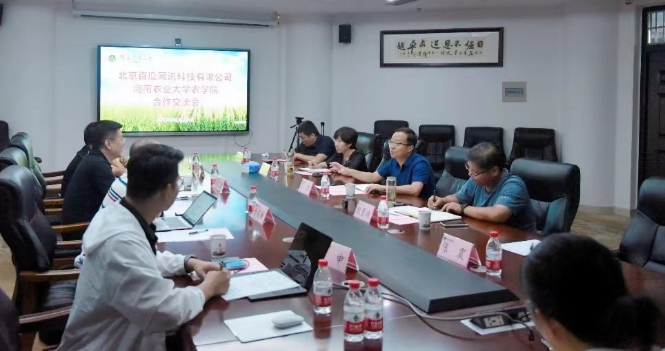 杨实秋一行先后就北京百度网讯科技有限公司 “文心一言”和“飞浆一体机”在农业上具体应用场景、以及该公司近年来在助力智慧农业与数字乡村建设、开展智慧农业应用创新和数字化人才培养认证等方面取得的成效,以及下一步与我校进行合作的愿景与方向进行了详细的介绍。