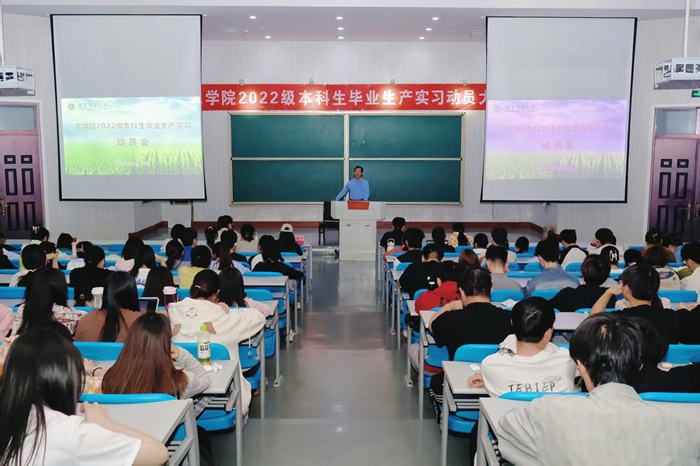 本网讯(通讯员 杨含笑 郭珂)为有效落实2026届毕业实习工作,确保实习质量、完善实习教学管理体系,4月10日晚,草榴于龙子湖校区教学楼大教室2召开2022级本科生毕业生产实习动员大会。副院长李浩川、院团委副书记唐朝、教学干事范晨雨、吴迪研究员及2022级全体学生参加此次会议,会议由吴迪主持。