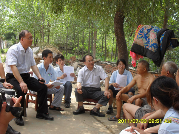 联系的学生党支部。7月1日同学们就来到赵河镇,得到当地政府的热烈欢迎和大力支持,方城县副县长胡彦民还对服务团成员进行了工作培训。7月3日在赵河镇袁庄村,7名党员分成了3个小组入户走访农民,就试验区建设情况进行调研和相关政策宣传。谭金芳来到农户家中,同服务团成员及农民亲切交谈,详细询问农民对设立转变农业发展方式综合改革试验区的意见和建议,认真解答广大农民关心的新农村建设、农业合作社、土地流转等各种疑问。