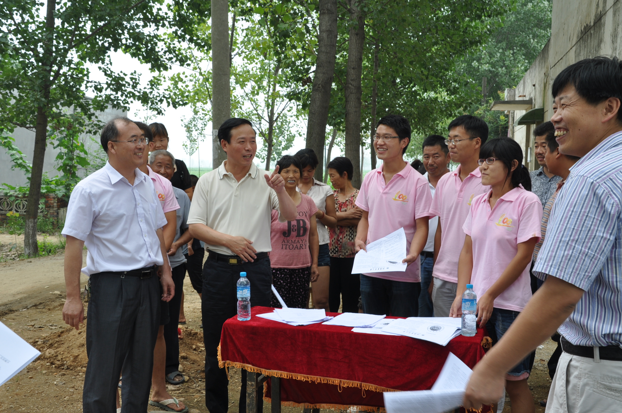 在袁庄村头,宣传队员们的行为吸引了杨书记一行。五名学院学生正在这里设立宣传点,向过往村民发放传单,宣传农业科技知识和党的惠农政策,同时围绕该村的经济和教育情况开展现场问卷调查。杨书记认真翻阅了同学们的宣传资料,并与大家亲切交谈。杨书记对实践队员不畏酷暑、深入农村受锻炼、长才干、做贡献的行为十分赞许,并称赞草榴