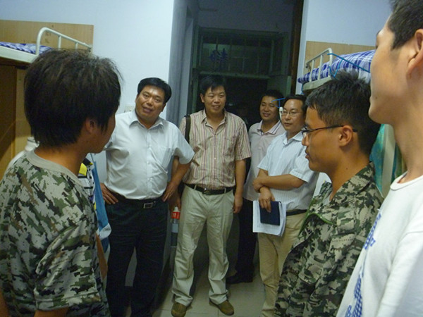 8日晚7点,院党委书记黄松、副书记贾磊、院团委书记易振、院办公室主任王春丽及新生班主任、辅导员深入桃李园学生公寓看望新生,详细询问新生的基本情况,了解存在的困难和要求,鼓励新生积极适应大学生活,并第一时间送上学院的温暖。