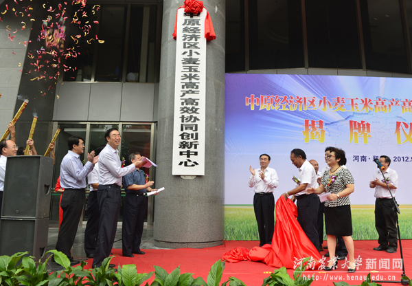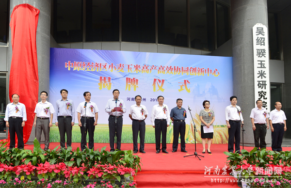 9月25日下午,中原经济区小麦玉米高产高效协同创新中心揭牌仪式在我校工程楼南广场举行。副省长徐济超出席仪式并为协同创新中心揭牌。