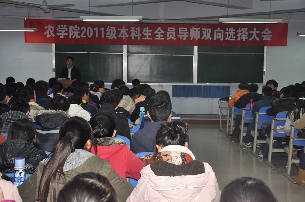 2011级本科生全员导师双向选择大会在桃李园西教学楼604教室准时召开。11个科研团队的负责人参加了会议,会议由草榴