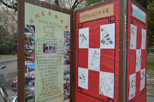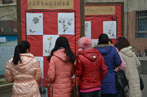 12月18-19日,2010级中药学专业假期实习成果展在文化路校区3号楼前举办。