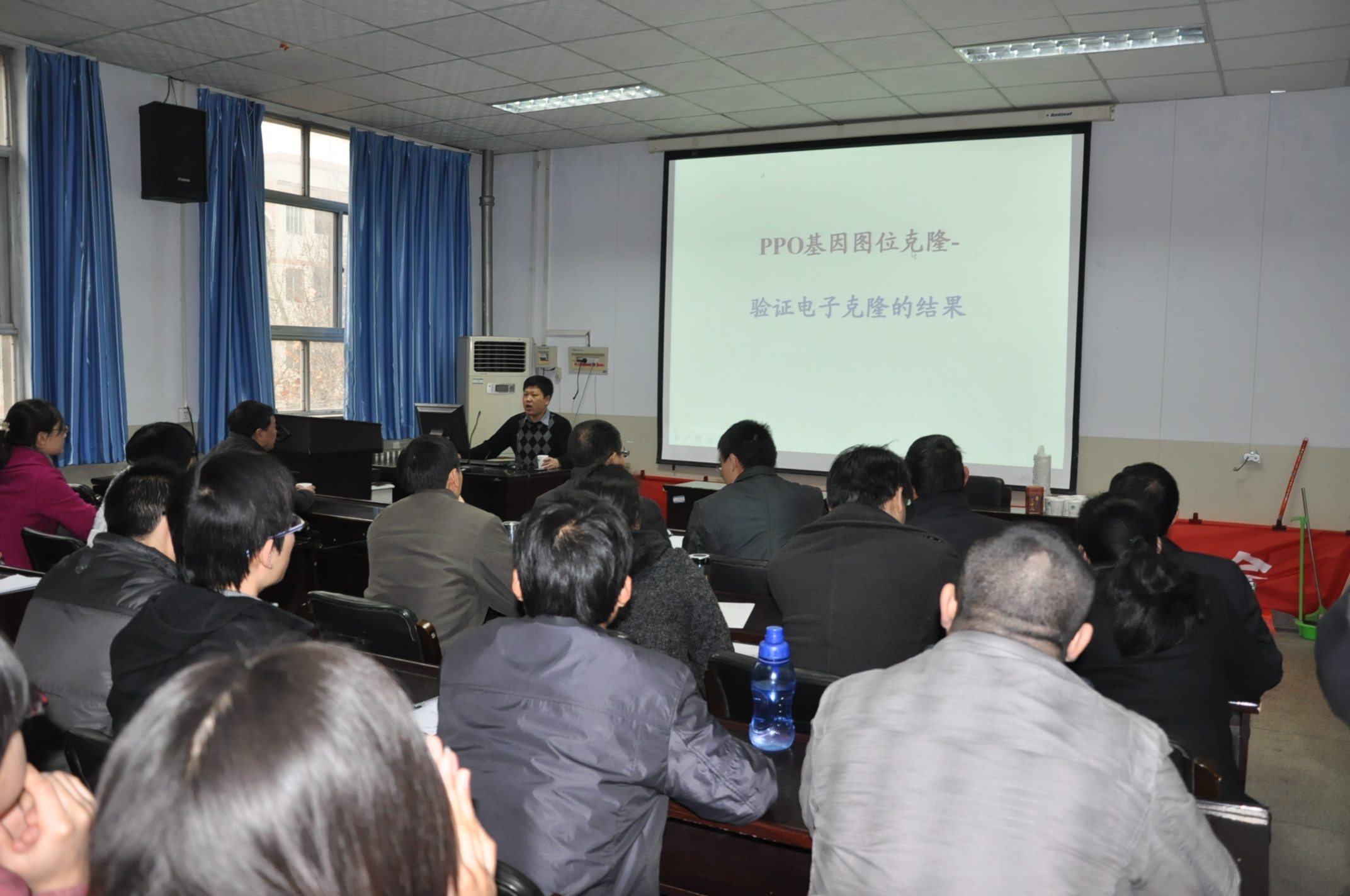 在报告会上,夏先春教授首先对小麦基因克隆及功能标记进行了分类介绍,然后深入浅出的讲解了小麦多酚氧化酶的功能及克隆、小麦细胞壁转化基因的功能及克隆、小麦D5亚基的分子标记等,其间又生动形象的讲解了各研究课题进展中的原理、方法及技术路线,最后又分享了自己多年来的研究经验和心得。