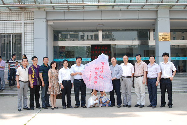 会后,与会师生合影留念并向母校捐赠刻有“桃李芬芳”的泰山石,该石尺寸2.8m×2.6m×1.1m,寓意母校桃李芬芳,学子勇攀高峰。