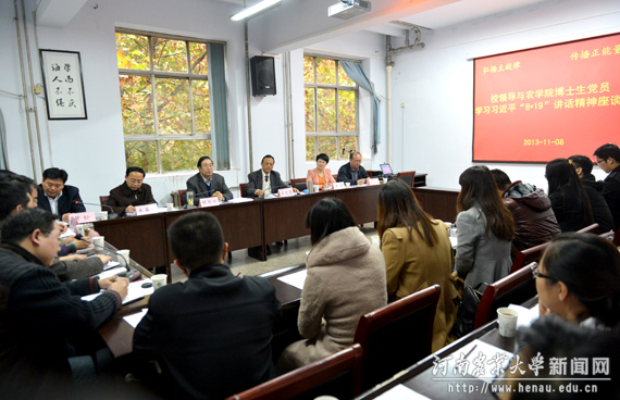 座谈会上,进茜宁等博士生党员结合自己的专业和科研实际,汇报了学习“8•19”讲话的感受体会,表示将坚定理想信念,奋发图强,为实现中华民族伟大复兴的中国梦而不懈努力。