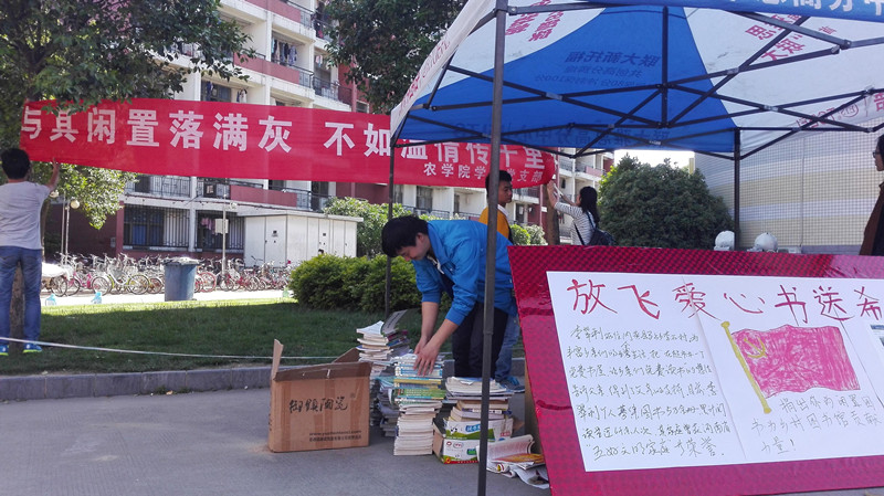 师生在作物生物技术学生党支部组织下,在桃李园学生公寓发起了“放飞爱心、传递希望”捐赠图书活动,向安阳内黄县李翠利自费投资创办了零门槛读书“微光书苑”捐献图书。