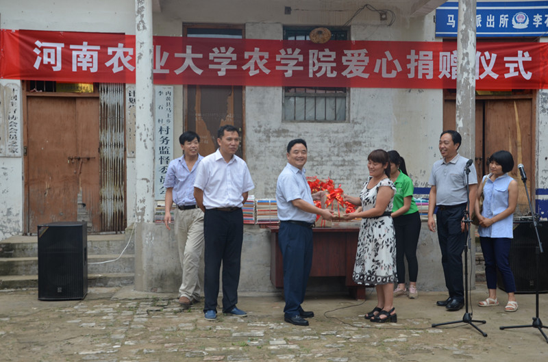 马上乡党委书记周贵安致辞,对河南农大师生的到来和捐赠义举表示热烈欢迎和衷心感谢。校党委副书记褚金海在仪式上讲话,对李翠丽女士积极投身公益事业,零门槛创建“微光书苑”,促进基层文化事业的做法表示肯定、敬佩和感谢。他简要介绍了学校的历史概况,近年来取得的突出成绩和为河南经济社会发展做出的突出贡献。褚金海表示,服务地方是草榴