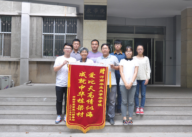 送来了一面题有“爱比天高情似海,成就中华栋梁材”的锦旗。院团委副书记周春涛及学院“呵护天使”——农情家园社会实践爱心支教服务团的成员接受了锦旗。