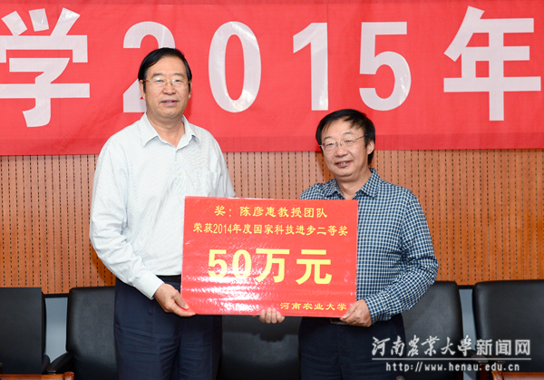 陈彦惠教授及其科技创新团队进行表彰,一次性奖励人民币50万元。程传兴还为草榴