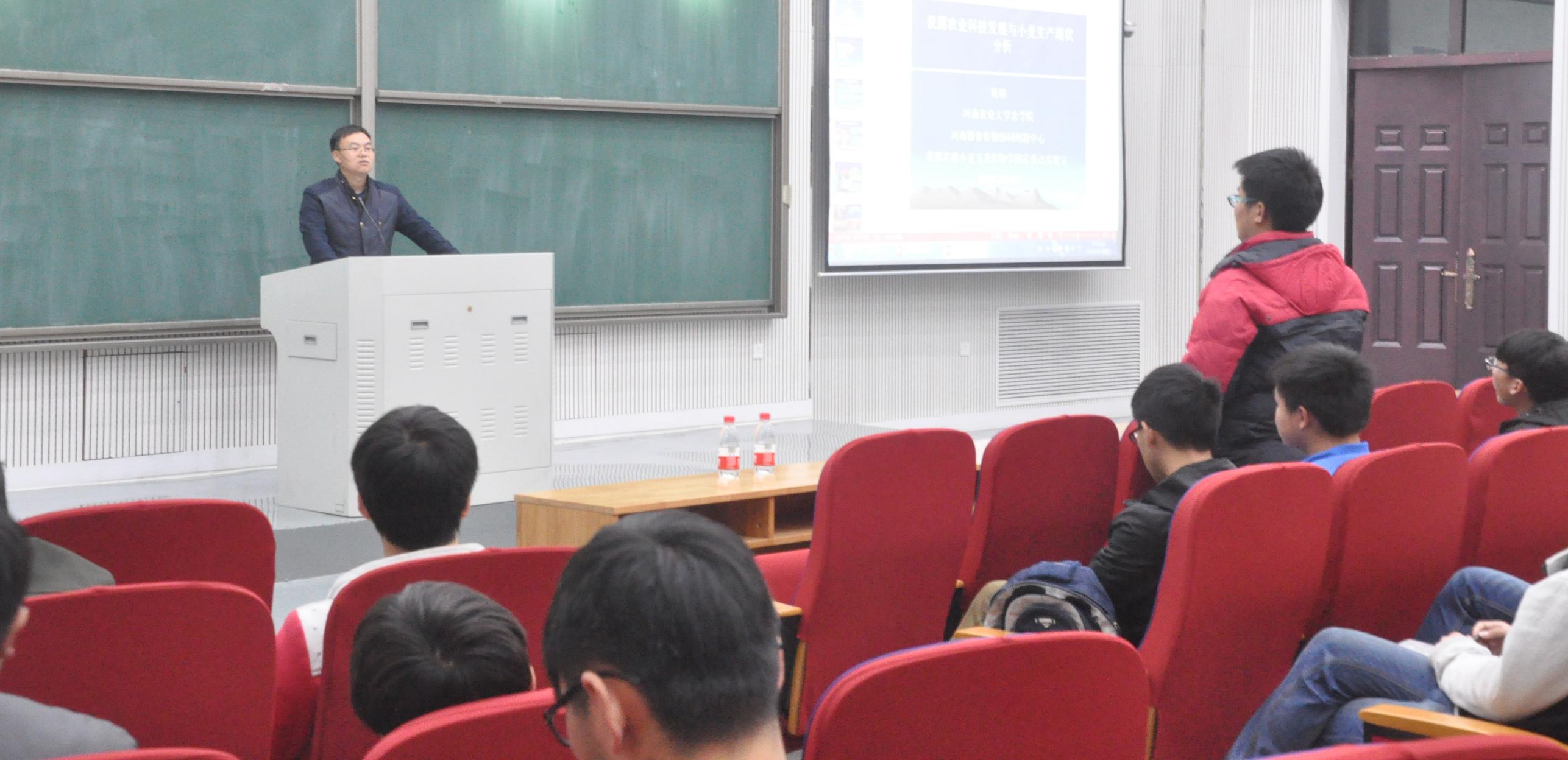报告会上,陈锋教授就我国粮食产量问题向学院学子阐述了粮食作物尤其是小麦产量提高的方法与当前国际以及国内的研究现状。并通过剖析当下几大高产优势性状的转基因粮食作物,向同学们展示我校在作物遗传研究方面取得的成就,准确定位了当前粮食作物对我国发展的战略意义。