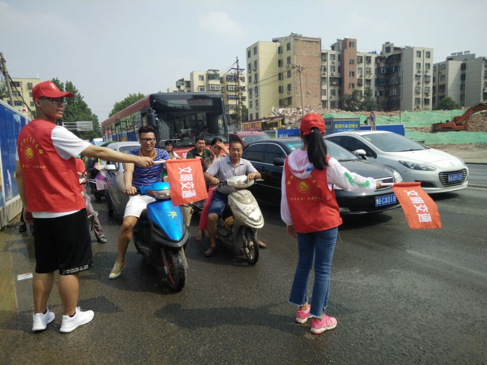 学生党支部的志愿者们。和这些大学生志愿者一样,6月30日,在郑州市南阳路、丰乐路多个交通路口和公交公交站点都有党员的身影。