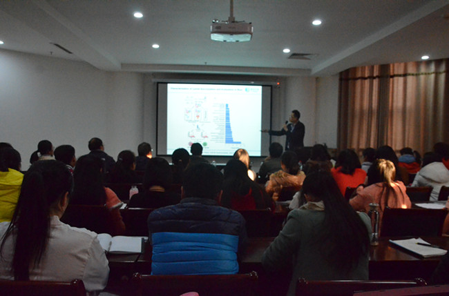 报告会上,卜晨博士首先向我们阐述了蛋白组学的基本原理,由此详细介绍了蛋白组学和蛋白修饰组学在植物生物学研究中的应用。其次详细讲解靶向定量蛋白组学PRM的应用的详细内容。卜晨博士的报告内容丰富,层次分明,却又相互联系,让人听的聚精会神。