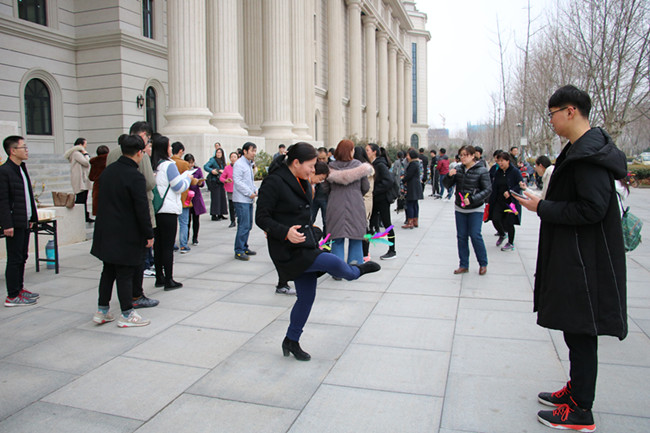 分工会在龙子湖校区第一实验楼南门广场,组织开展了“健康欢乐庆三八”女工健身活动,学院近60余名女教工参加。