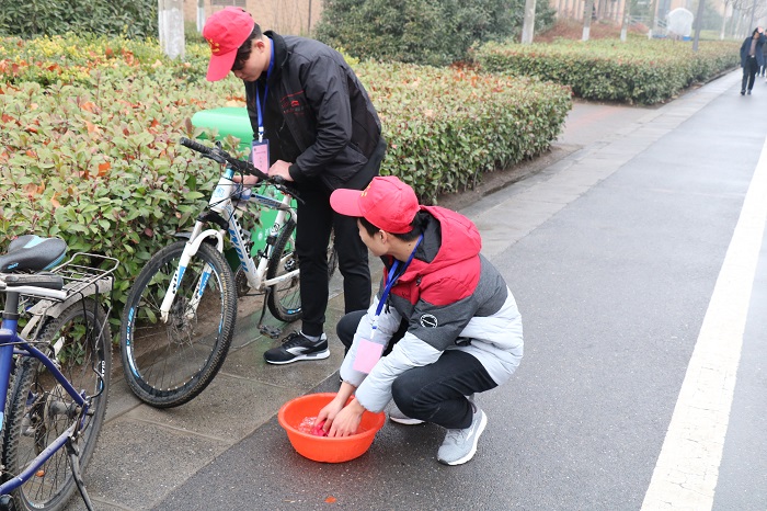 本次活动主要分为六项内容:清洗自行车、整理摆放共享单车、回收旧电池、帮返校同学搬行李、松花茶和树立榜样号召学习。活动中,青年志愿者们不惧恶劣天气,在校门口、停车场、宿舍楼下,随处可见他们忙碌的身影。活动期间,以校党委副总书记李成吾为代表的校领导一行亲临志愿活动现场,在了解过草榴