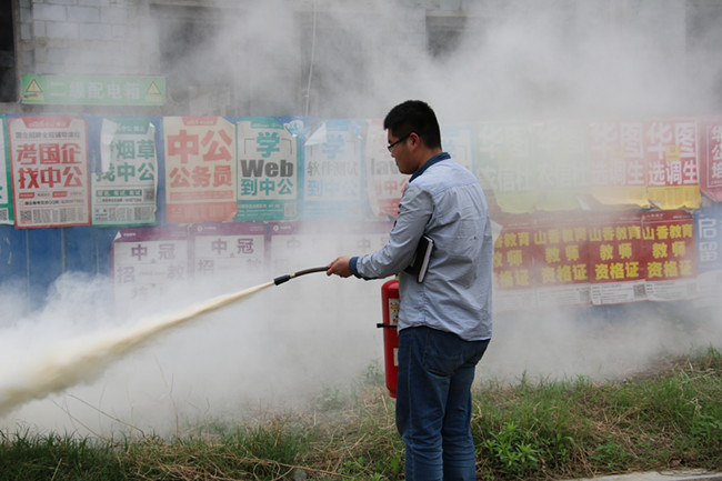 讲座结束后,在第一实验楼西南侧进行了进行了灭火器的操作使用演练。(图/文 张辉)