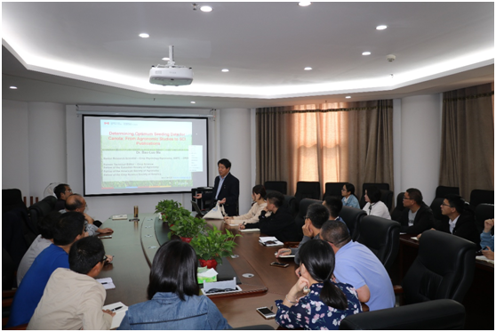 教师、研究生作了题为“Determining Optimum Seeding Date for Canola:From Agronomic Studies to SCI Publication”的学术报告,并就田间试验设计、数据整理分析、SCI论文写作及大田作物栽培生理研究热点等问题与师生进行了广泛而深入的交流和探讨。报告会由草榴