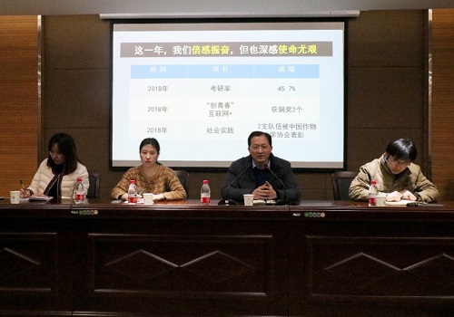 在龙子湖校区实验楼召开新学期学生干部大会,主要讲述2019年新学期各项工作安排。团委书记冯晖,团委副书记梁皓、徐珂,辅导员李盼出席会议,学院2016级至2018级各班班长、团支部书记参加本次会议。