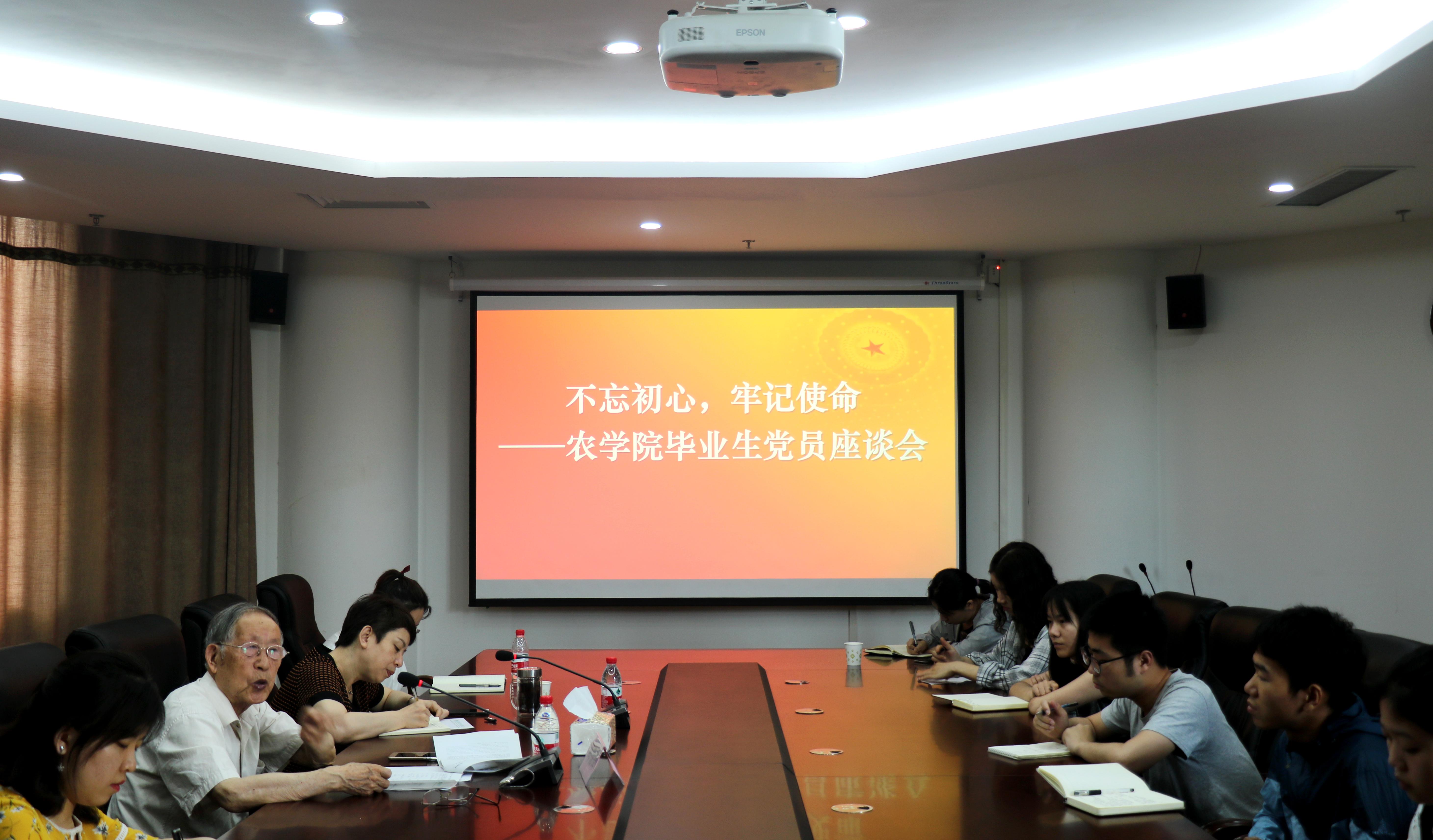 在龙子湖校区实验楼201会议室召开了“不忘初心,牢记使命”2019届毕业生党员座谈会。学院特邀组织员韩锦锋教授来到同学们身边,一同畅谈青春、奋斗、理想。座谈会由院党委副书记吴旭静主持。院党委组织员刘银银、团委副书记徐柯和部分毕业生党员参加了座谈会。
