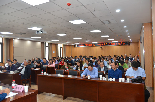在第一实验楼院报告厅召开“不忘初心、牢记使命”主题教育动员大会。校党委书记魏蒙关出席会议并作重要讲话。学院在家班子成员、全体教职工参加了会议。