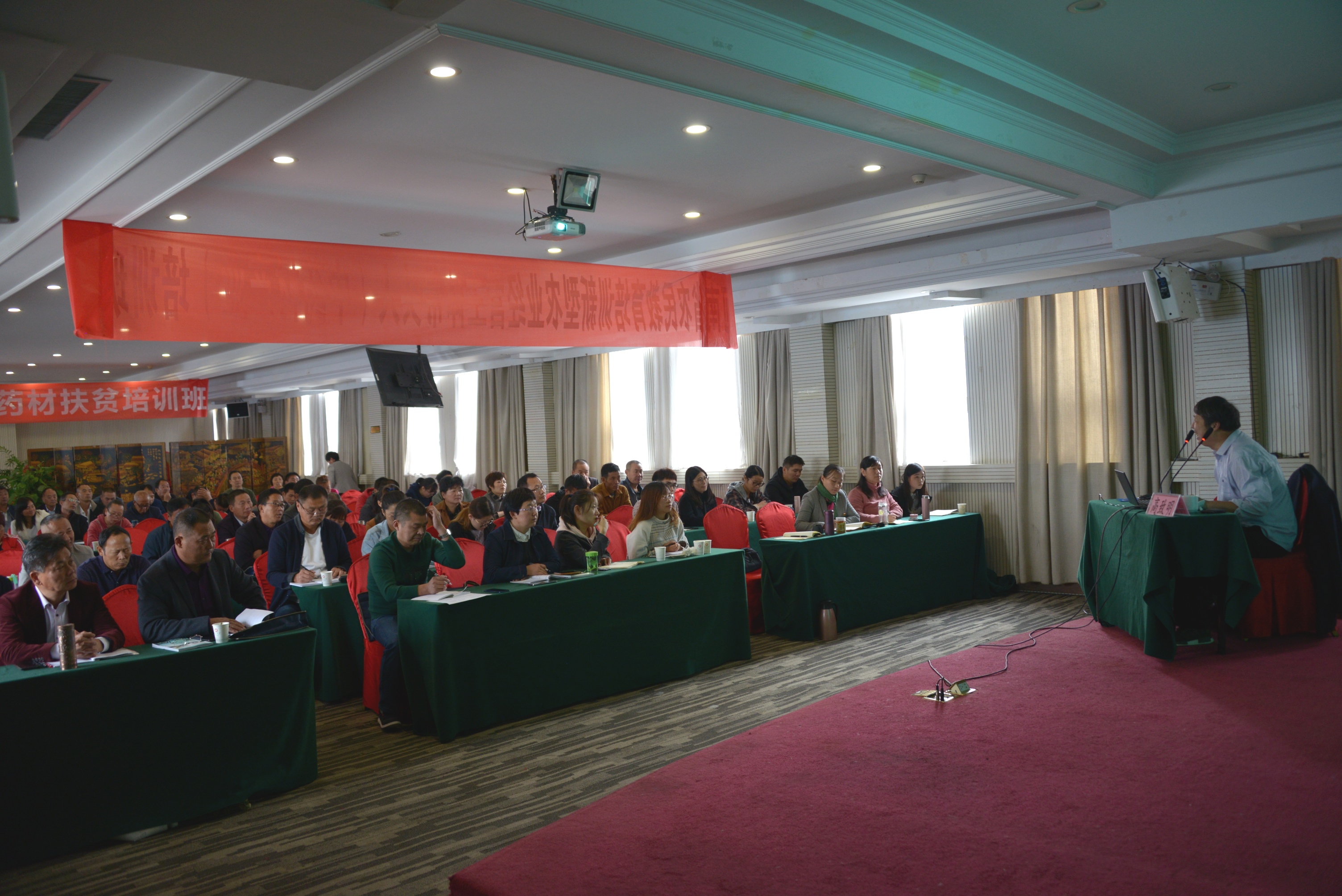 中药学学科带头人高致明教授带领支部青年党员对河南数十种药材的种植技术要点进行了详细的讲解。26日下午,党支部成员来到大刘镇闫魏村药材种植基地,在田间现场解决学员们在生产中遇到的难题。带着各种问题而来的农民企业家及药材种植户在老师们的耐心解答下,感觉茅塞顿开,现场气氛十分热烈。
