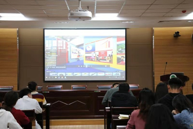师生党员干部于第一实验楼南321,参看了“伟大历程辉煌成就—庆祝中华人民共和国成立70周年大型成就展”网上展馆。