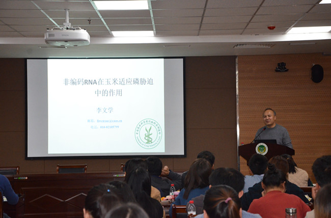 李文学研究员以“玉米耐受磷胁迫的分子机制”为题,从田间筛选材料入手,介绍了其在非编码RNA与玉米适应磷胁迫关系上的最新研究进展,他表示:了解植物适应磷胁迫的生理及其分子机制,是充分利用磷素的生物学潜力,培育磷高效作物品种的前提。