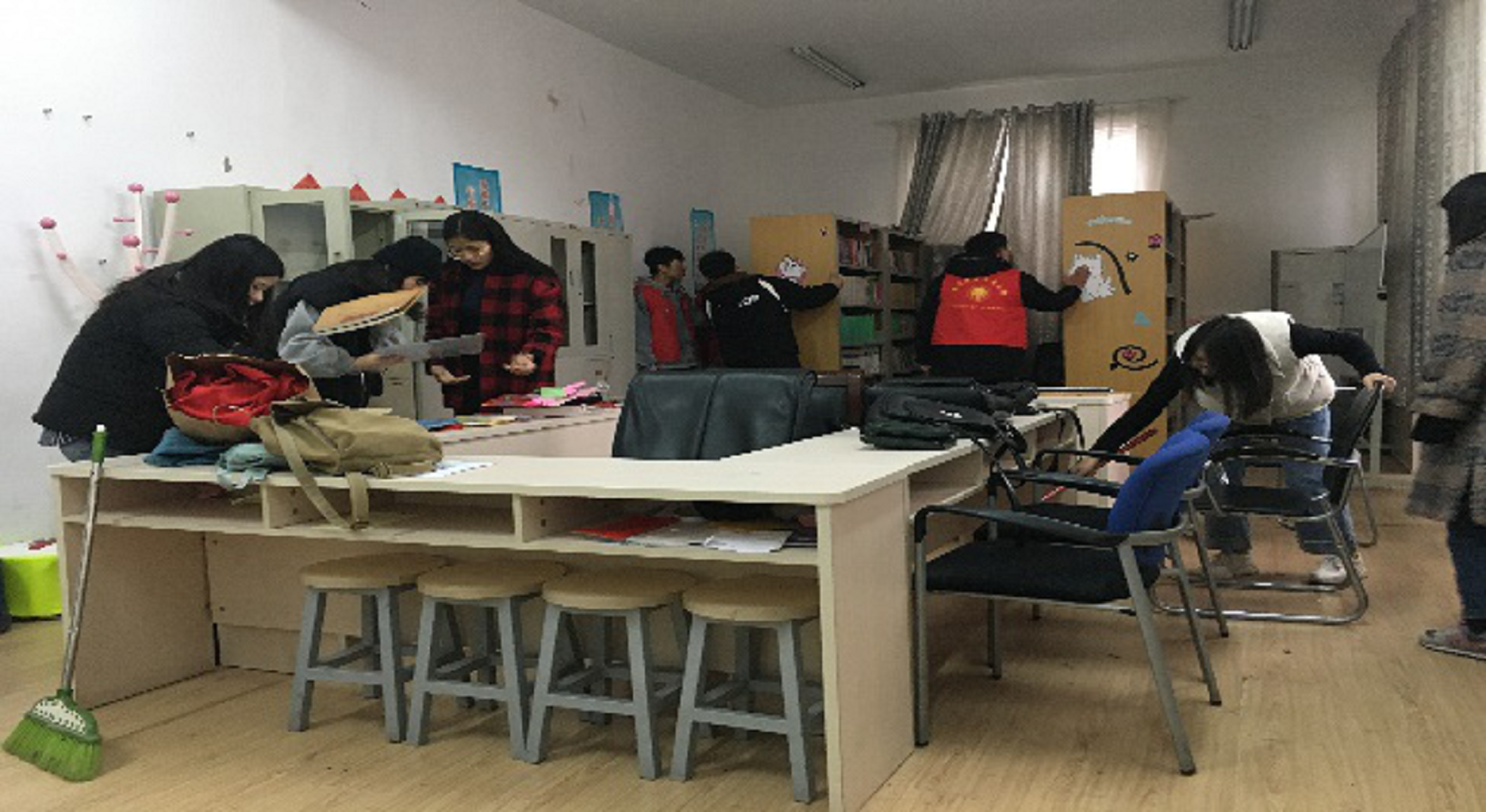 在社区社工刘贝贝老师的带领下,服务团对贾岗社区党群服务中心的活动室进行了彻底的卫生打扫。活动伊始,刘老师对此次活动的主要用途及意义作出说明。活动中,大家分工协作,整理并有序地摆放了室内的活动器材,调整了活动室四个书架的摆放位置,扩大了活动室的利用空间。成员们分工明确,配合默契,以饱满的热情和积极的状态顺利完成了活动室的卫生打扫。最后,刘老师肯定了同学们的辛勤劳动,并指出活动中出现的问题与不足,大家一起合影留念。