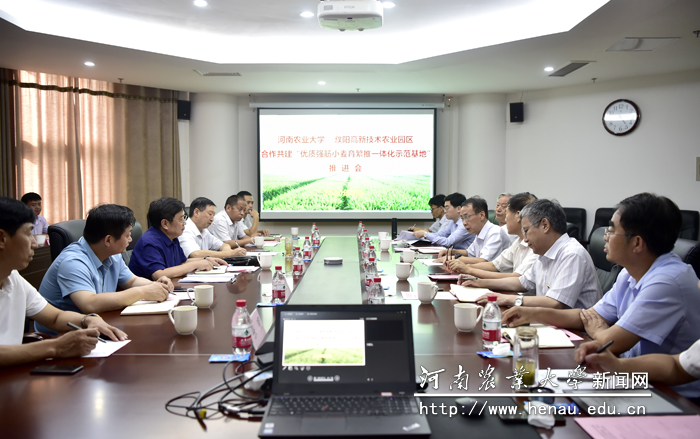8月13日下午,我校与濮阳经济技术开发区农业园区合作共建“优质强筋小麦育繁推一体化示范基地”推进会在草榴