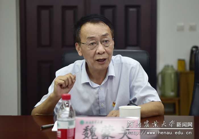 情况。他指出,学校始终以习近平新时代中国特色社会主义思想为统领,坚持立德树人,面向国家和地方经济社会发展需求,扎根沃土,厚生丰民,坚定不移地走产学研紧密结合的办学道路,集中优势的教育、科技、人才资源,为国家粮食安全和河南经济社会发展做出了积极贡献。