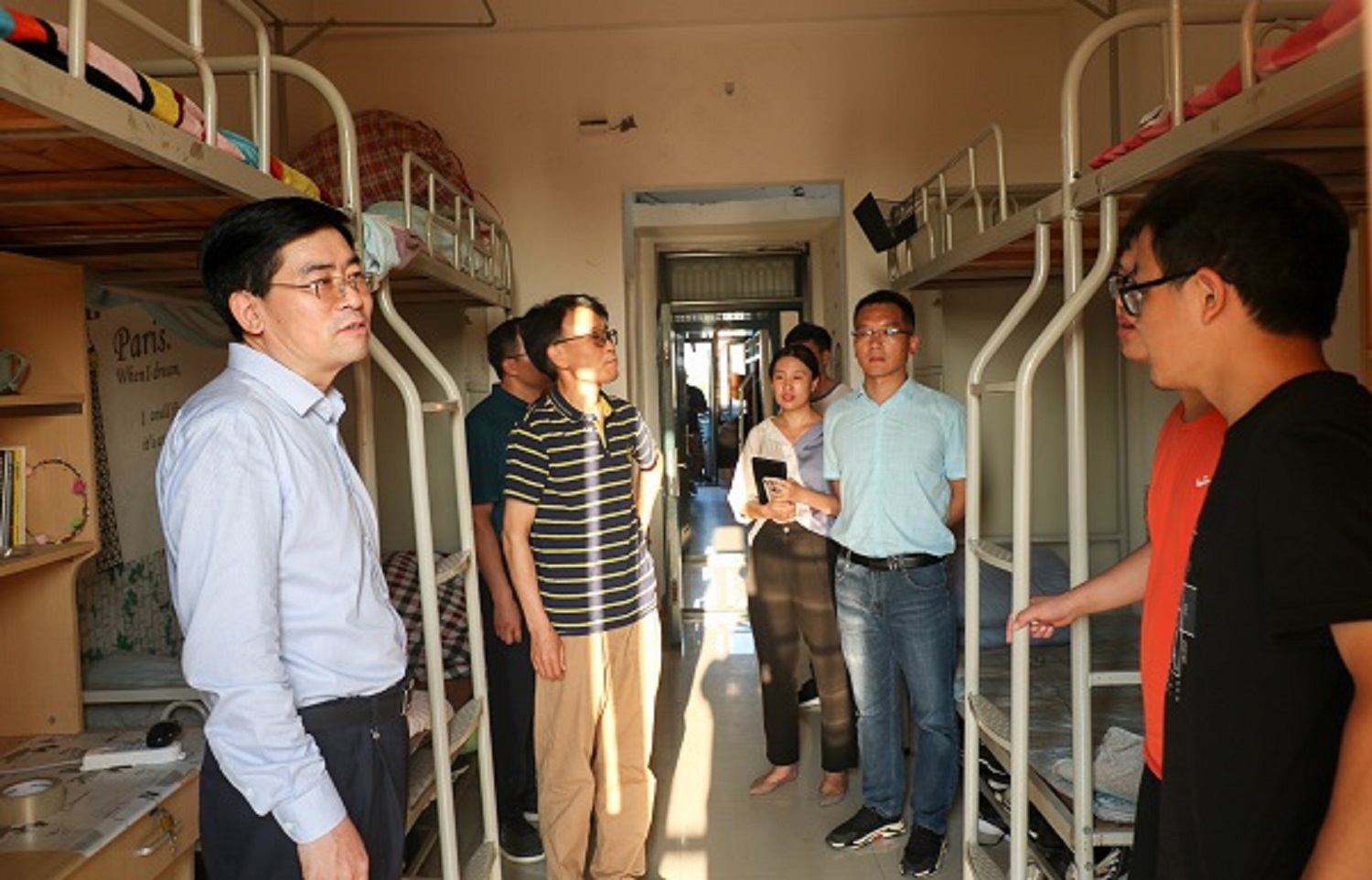 报到现场秩序井然。学院为每位同学发放《致全体返校学生的一封信》,组织党员志愿服务队,为返校学生搬运行李,使同学们感受“回家”的温暖。期间,张改平亲自为返校学生发放学院精心准备的返校爱心礼包,包括口罩、消毒湿巾、消毒液、温度计等防疫物品。报到结束后,学院领导深入学生宿舍,与返校学生亲切交谈,详细了解大家的思想状况、假期生活、返校学习安排等情况。就新学期学习生活,郭战伟指出,希望同学们在经历了漫长的假期之后,一是要尽快实现要由假期生活投入到校园生活的转变,二是要尽快实现从家庭生活转变到集体生活的转变。同时,他叮嘱同学们在学校遇到任何问题及时跟辅导员、班主任老师联系,学院会全力以赴为同学们返校后的生活和学习提供坚实保障。