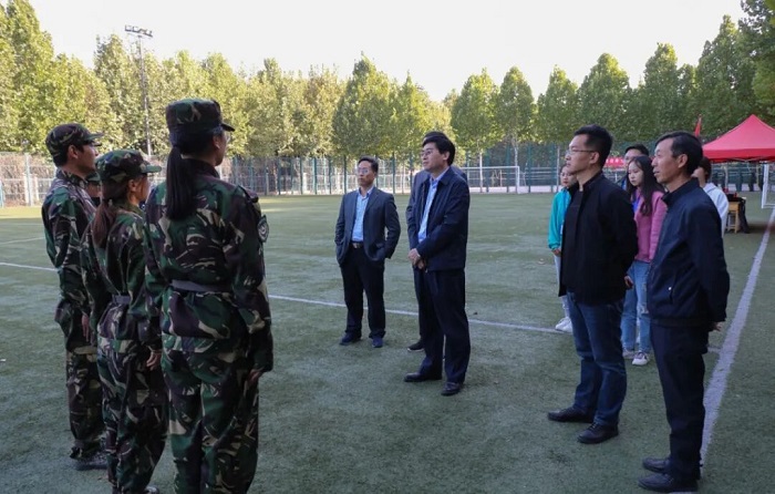 为实地了解新生军训情况,表达对军训教官和新生们的关心和问候,10月21日下午,校党委委员、院党委书记郭战伟等院领导一行前往足球场看望2020级新生、慰问军训教官。