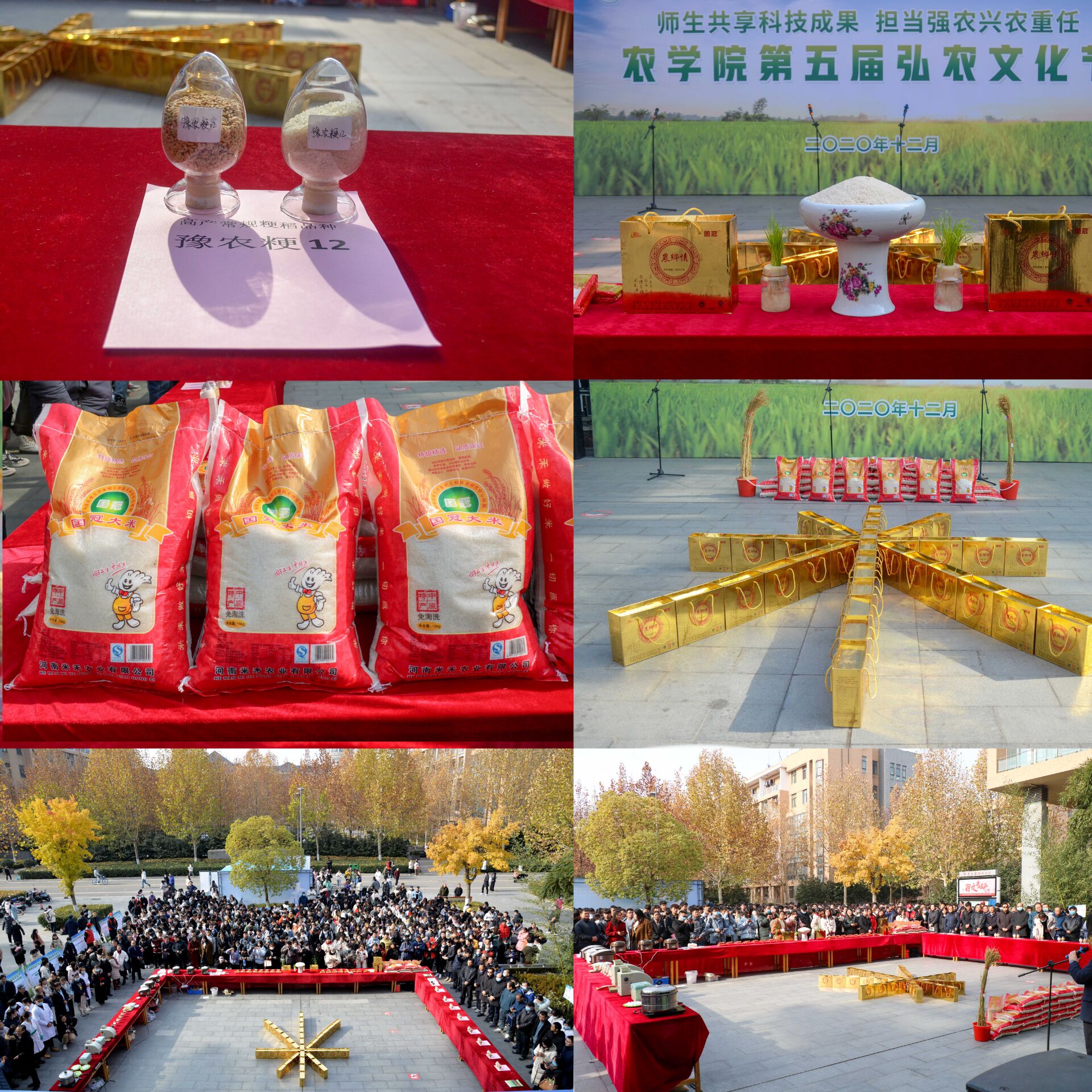 本网讯(通讯员 李盼)“民以食为天,食以米为先”。12月18日,学院在龙子湖校区第一餐厅前,隆重举办以“师生共享科技成果 担当强农兴农重任”为主题的第五届弘农文化节。副校长尹新明、林同保,校党委宣传部部长王红艳,校党委学工部部长徐峰,校党委研工部部长张红阳,校党委教师工作部部长、教务处处长冯建灿,校社会服务处处长贺德先,校实验室与设备管理办公室主任宋安东,校科技处副处长张世敏,校党委委员、草榴
